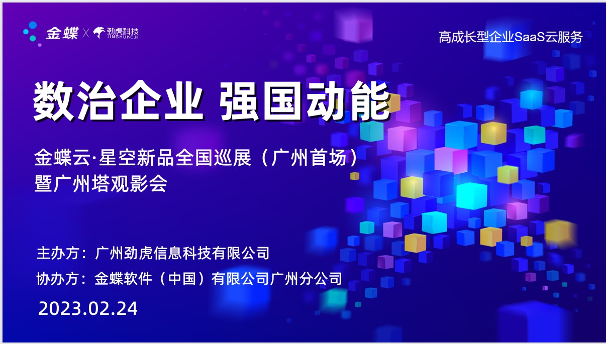 #數治企業(yè)強國動(dòng)能-金蝶云?星空助力成長(cháng)企業(yè)重構數字戰斗力# 2月24日,由廣州勁虎信息科技有限公司舉辦的金蝶云星空全國巡展-(廣州首場(chǎng))暨廣州塔觀(guān)影會(huì )活動(dòng)在美麗的廣州塔舉行,活動(dòng)客戶(hù)到場(chǎng)率爆滿(mǎn),現場(chǎng)參與人數逾120+人,感謝到場(chǎng)的客戶(hù)對廣州勁虎的大力支持。