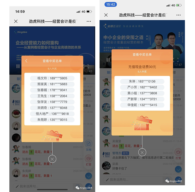 在直播過程中我們也進(jìn)行了兩次抽獎,為每位幸運(yùn)觀眾充實(shí)現(xiàn)金話費(fèi)30元,感謝大家能在這個非常時期,匯聚在屏幕前參加本次直播。
