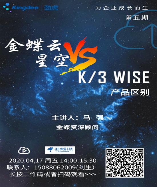 04.17勁虎科技組織了釘釘?shù)谖迤诰€上培訓,本次主要分享的是金蝶云星空和K/3wise產(chǎn)品的區(qū)別,由金蝶資深顧問馬強先生主講。馬老師在線上結合金蝶云星空和K/3wise這兩款軟件,分別展示了財務云、智能會計平臺、人人報銷、供應鏈云等等模塊的區(qū)別,讓大家更深入地了解金蝶產(chǎn)品,從而匹配出一款合適企業(yè)自身發(fā)展、提供強有力支持的ERP系統(tǒng)。